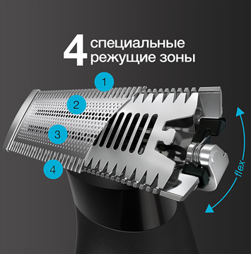 Наслаждайтесь комфортным и бережным бритьем, независимо от вашего уровня умений. Это возможно благодаря полностью активному 4D-лезвию, которое состоит из 4 мощных режущих элементов, совершающих 450 движений в секунду.