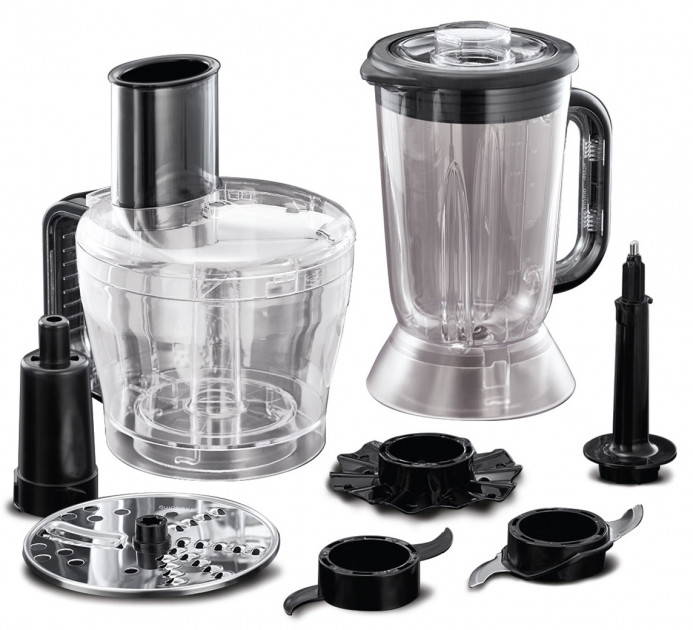 | Дополнительная информация | Комплектация: кухонный комбайн, чаша блендера, основная чаша, диск для нарезки тонкими ломтиками и для измельчения продуктов, насадка для теста и диск для взбивания крема, руководство по эксплуатации, сервисная книжка |
