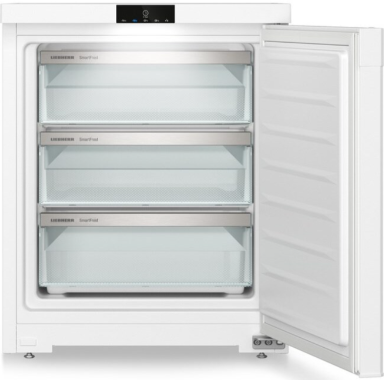 Морозильник оснащен защитой от детей, индикацией отключения электроэнергии, индикацией открытой двери, сигнализацией повышения температуры и сигнализацией о неисправности. Технология FrostProtect обеспечивает эффективную работу при минимальной наружной температуре до −15°C. Морозильник имеет регулируемые по высоте ножки спереди, вентиляцию цоколя и сменный уплотнитель двери.