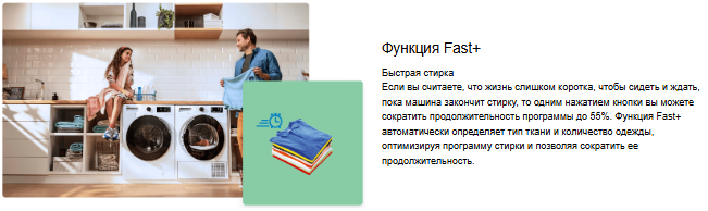 | Специальные программы | быстрая стирка, выбор скорости отжима, выбор температуры стирки, замачивание, отсрочка старта, пар, старт/пауза |